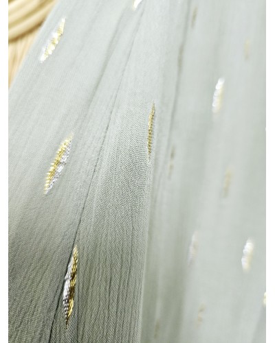 Falda fluida, muy fresquita en color verde militar y con pequeños detalles en dorado/plata. Tejido arrugadito. Cintura elástica. Aberturas laterales en el bajo.