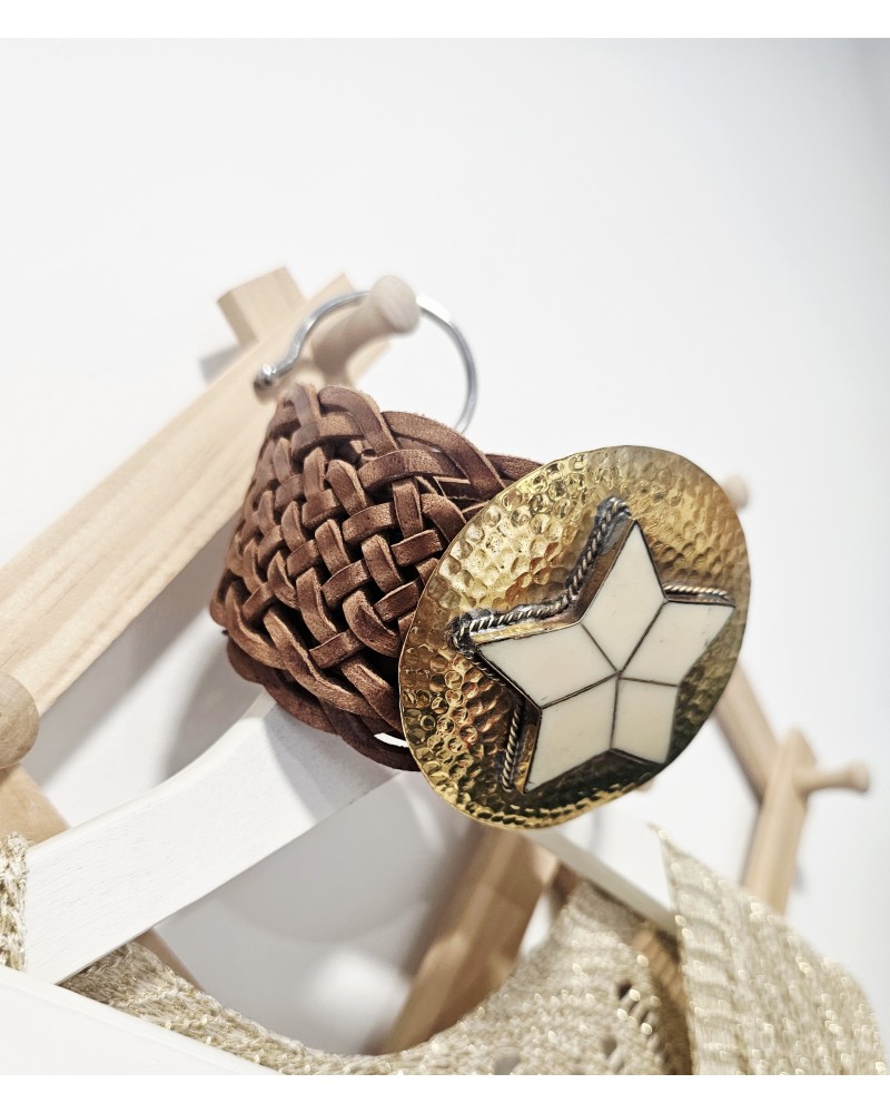 Cinturones estilo Boho trenzados. Hebilla dorada con estrella en blanco.
