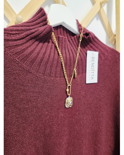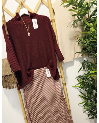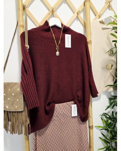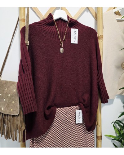 Jersey de punto suave y gustoso en color burdeos. Cuello medio. Manga 3/4. Son holgaditos, quedan sueltos.
