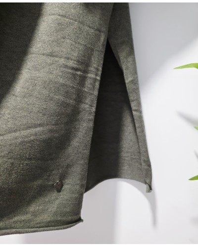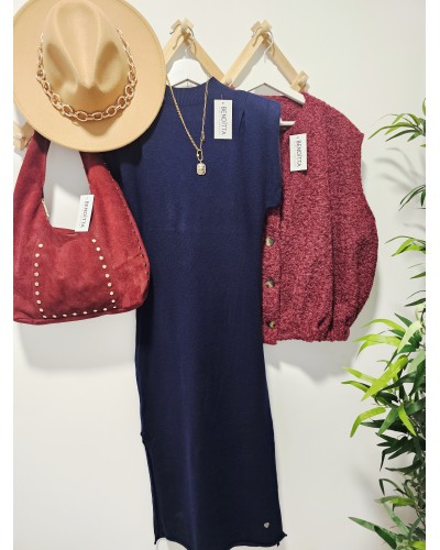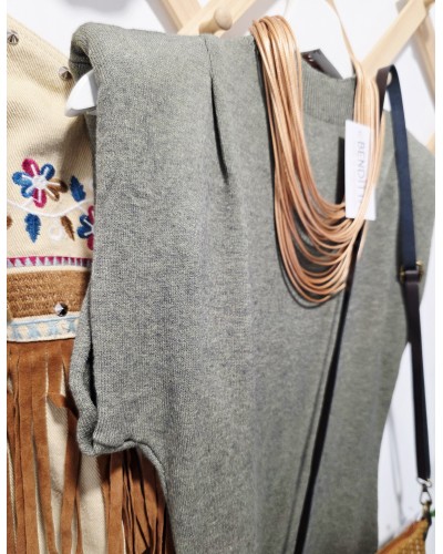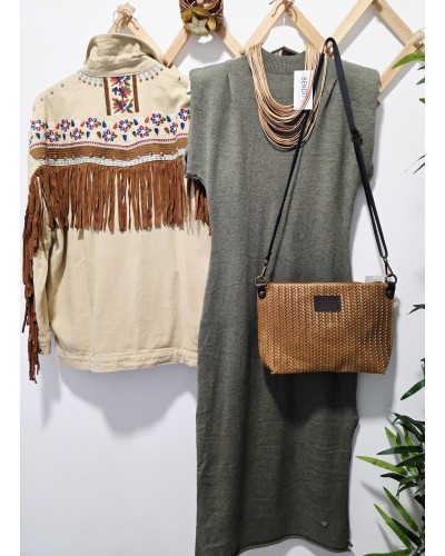 Vestido largo de punto elástico en color verde oliva. Con hombreras y aberturas laterales en el bajo. Quedan pegaditos.