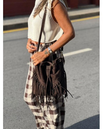 Chaqueta Bolsillos / Flecos Marrón Chocolate