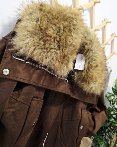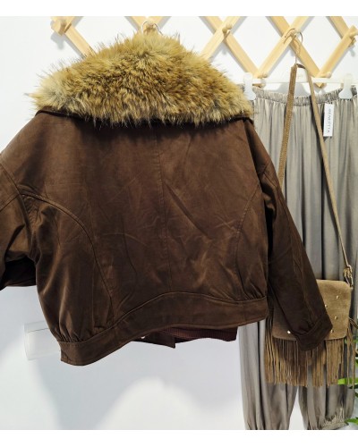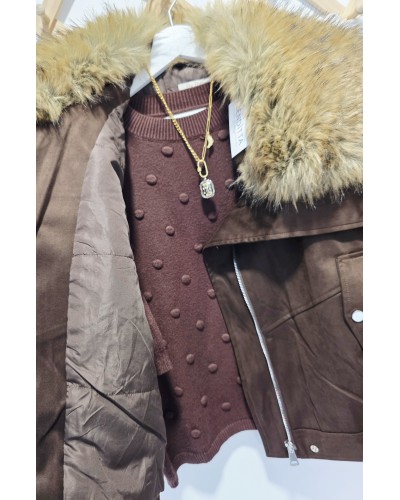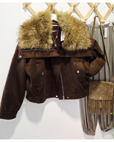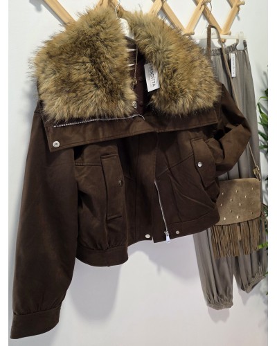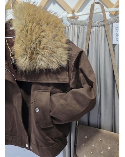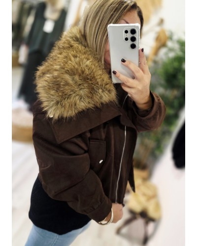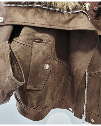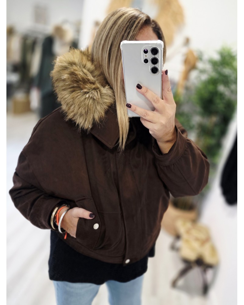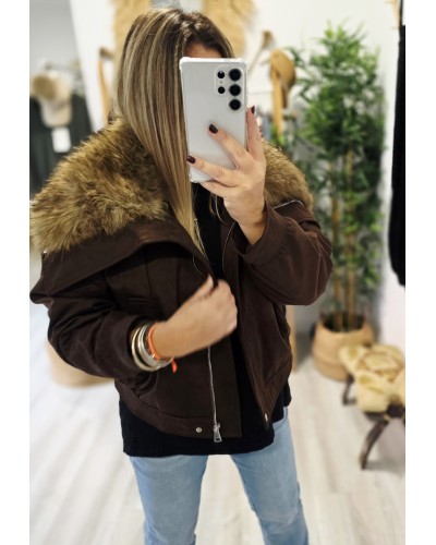 Cazadora Efecto Ante / Pelo Marrón Chocolate