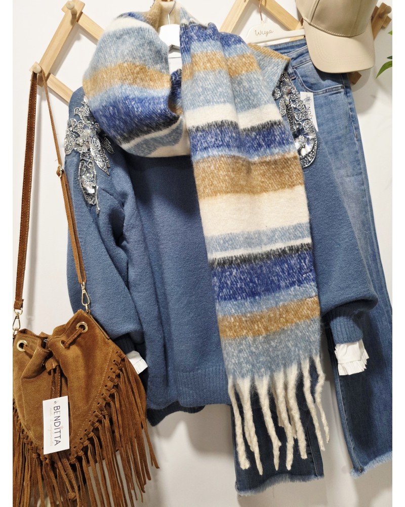 Maxi Bufanda Flecos / Rayas Azul