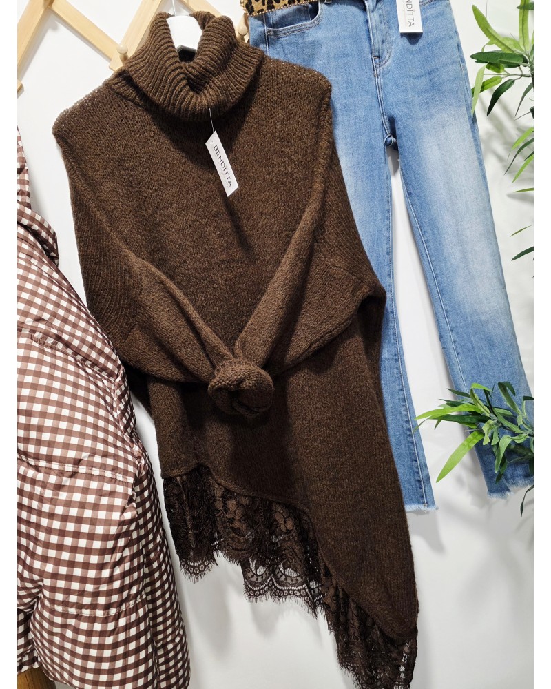 Maxi Jersey Cuello Vuelto / Puntilla Marrón