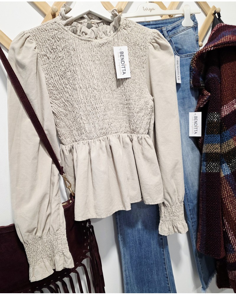 Blusa Micropana / Fruncida Beige