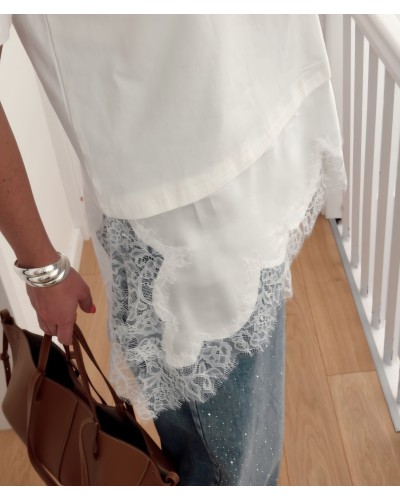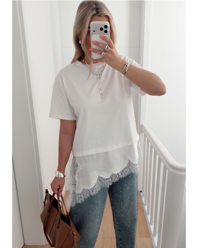 Camiseta Puntilla Asimétrica / Blanco